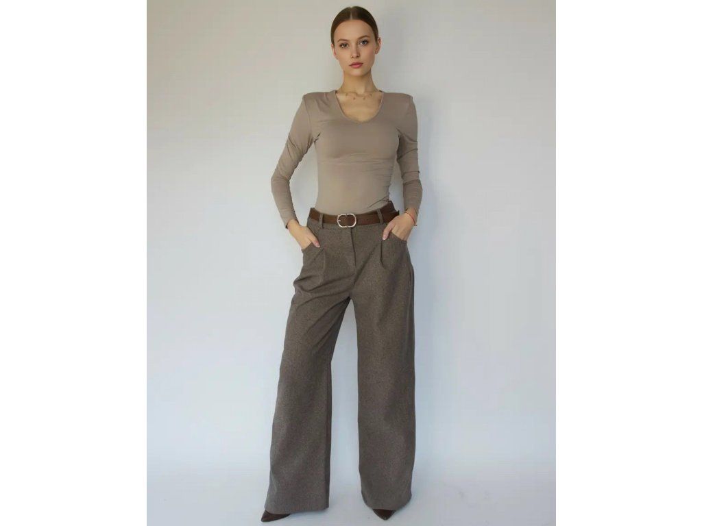 Tieto nadčasové široké nohavice sú ušité z hrubého materiálu, ktorý krásne drží tvar a poskytuje príjemné teplo počas chladnejších dní. Sú preto perfektnou voľbou na jesenné a zimné obdobie.