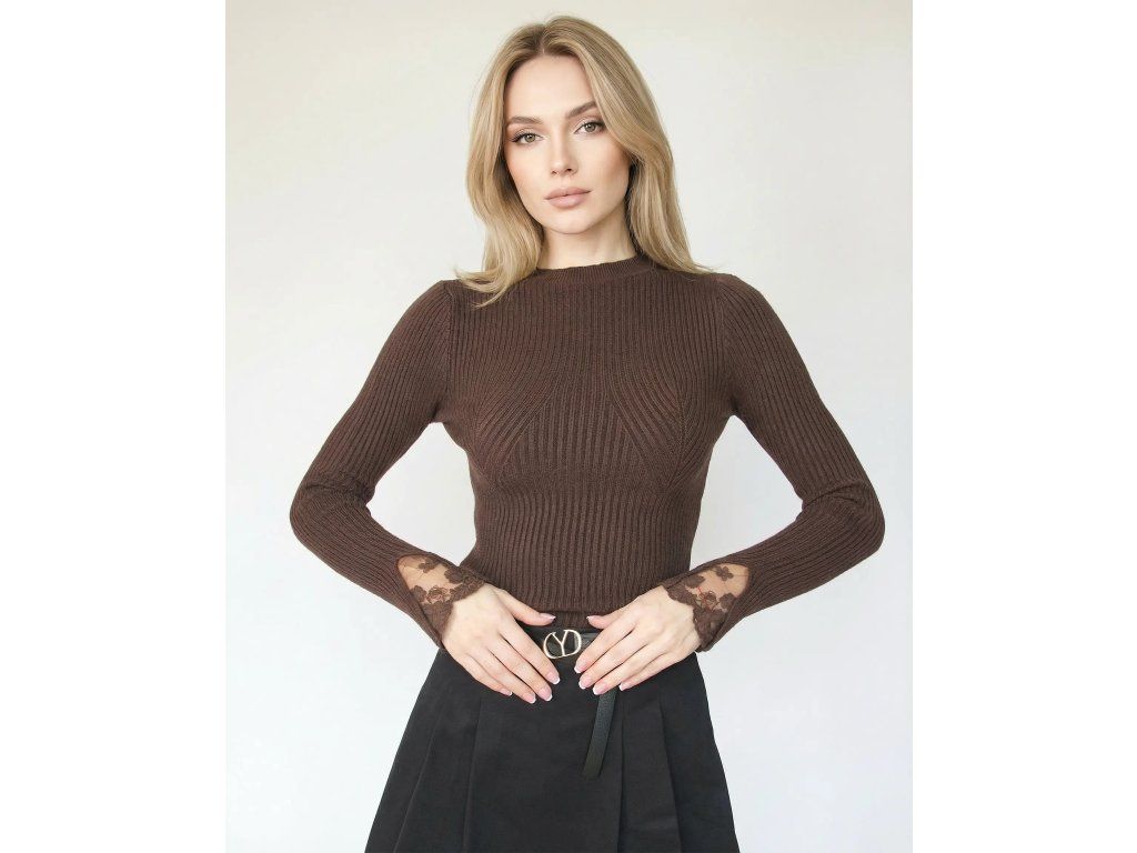 Najvýraznejším prvkom sú čipkované, jemne priehľadné manžety, ktoré dodávajú celému kúsku ženský, romantický a zároveň luxusný nádych. Kvetinová čipka pôsobí subtilne, no okamžite pritiahne pozornosť.